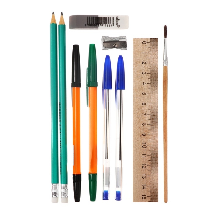 Альбом, Доска, Карандаш, Карандаши, Кисть, Клей, Краски, Линейка, Ножницы, Обложка для тетради, Обучающие карточки, Пенал, Пластилин, Расписание, Ручка, Стакан, Счётные палочки, Тетрадь, Точилка, Фломастеры, Цветная бумага, Цветной картон