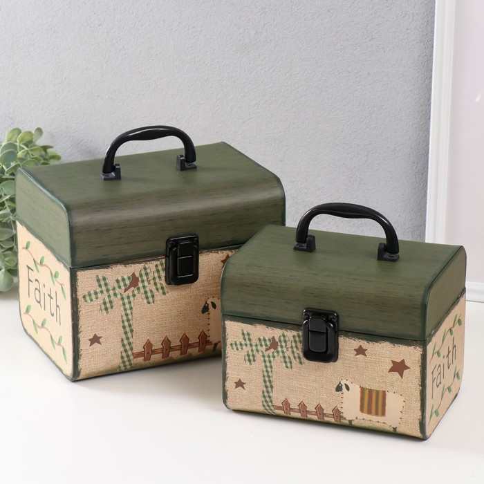 Шкатулка картон сундучок "Овечка под звездами" набор 2 шт 22х17х17,6 19х14,2х14,7 см