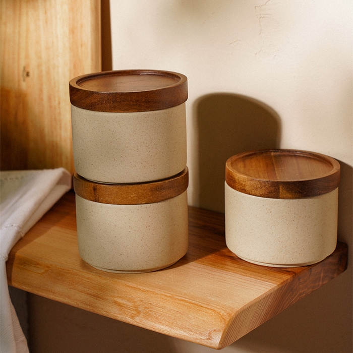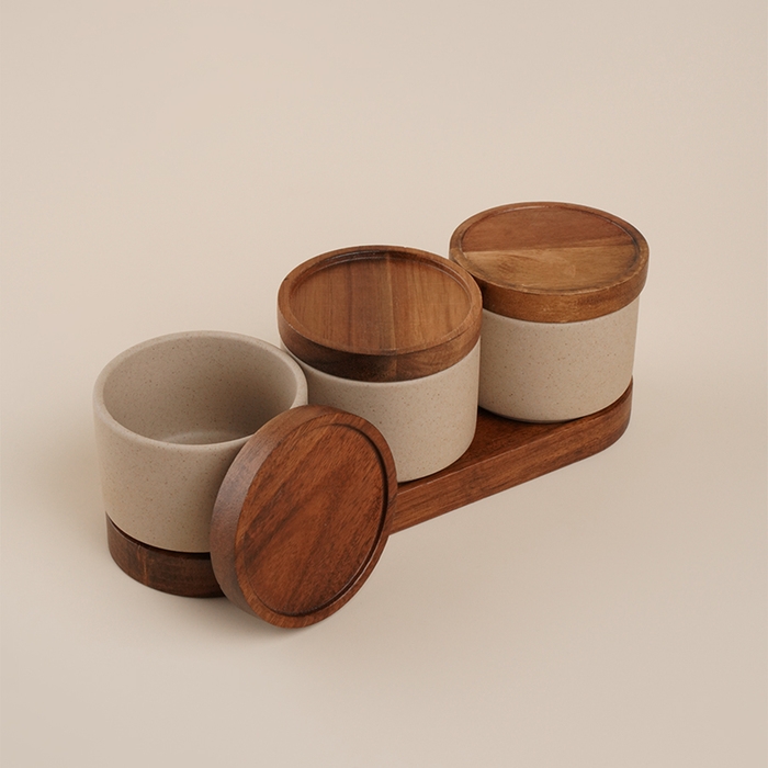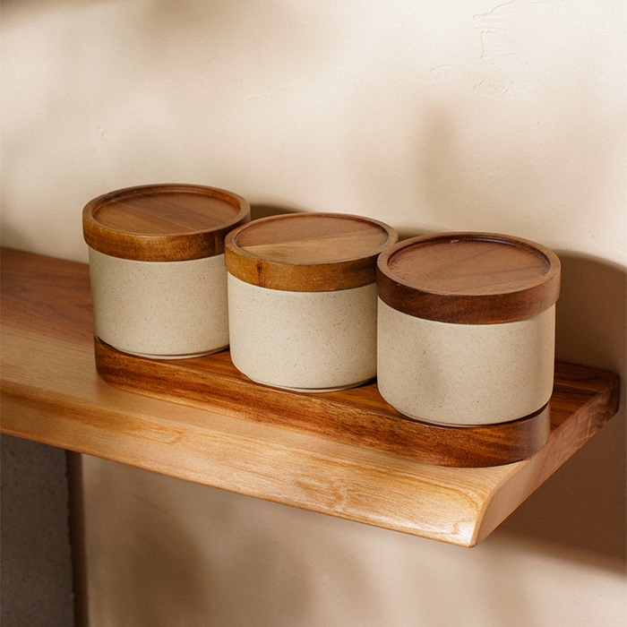 В наборе вы найдете три банки объемом 220 мл, идеально подходящие для хранения круп, специй или других сыпучих продуктов. Деревянная подставка из акации добавляет теплоту и элегантность, делая этот комплект не только функциональным, но и стильным элементом декора.