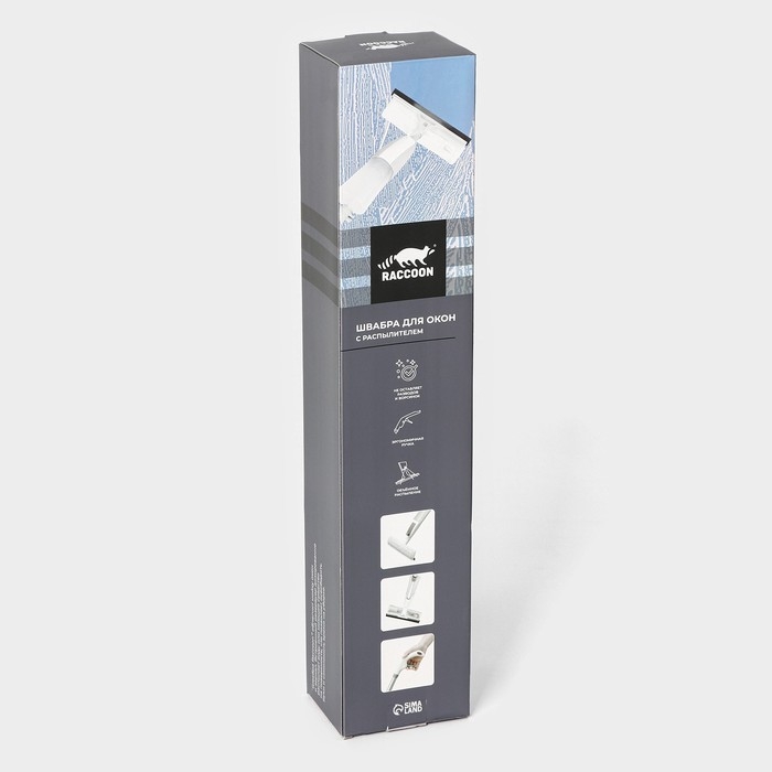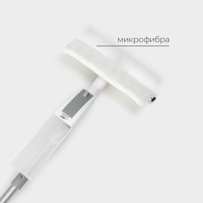 Щётка для окон с распылителем Raccoon, алюминиевая ручка, длина 116 см, водосгон 25 см, насадка их микрофибры 25×6 см