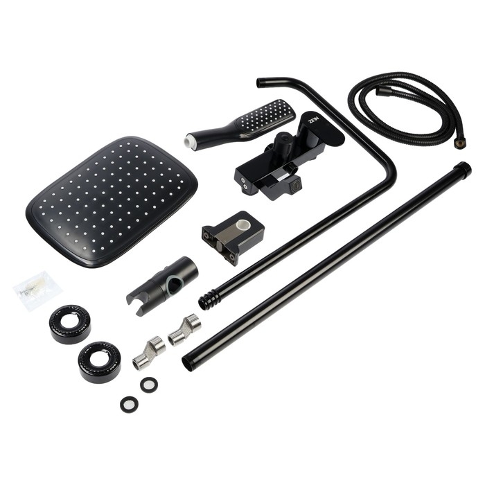 Душевая система ZEIN Z3869, смеситель, тропическая и ручная лейка, алюминий, черная