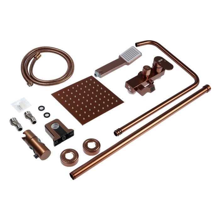 Душевая система ZEIN Z3870, смеситель, тропическая и ручная лейка, алюминий, цвет bronze