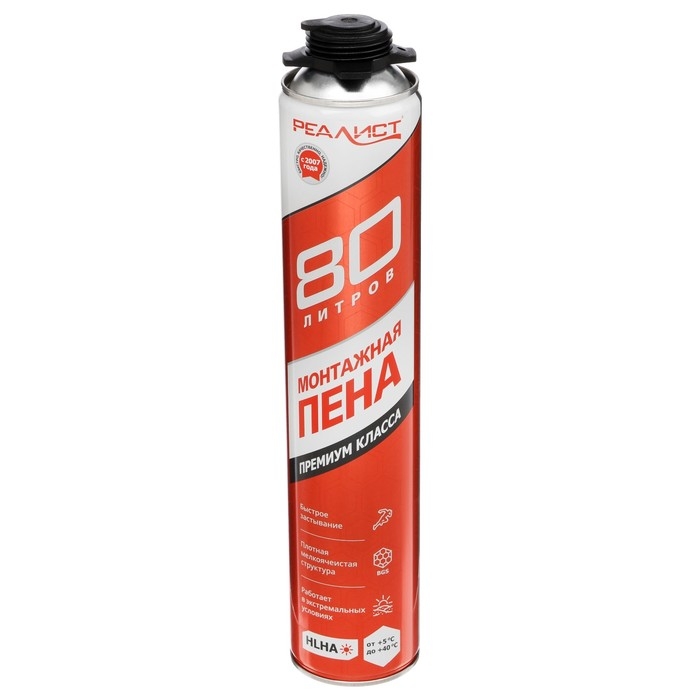 Пена монтажная REALIST PRO Red, пистолетная, летняя, 1000 мл