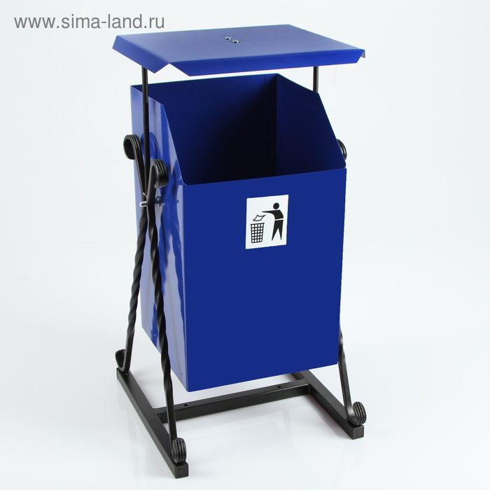 Урна уличная "Квадратная на гнутых ножках" с крышей 22 л, синяя, бак 0,5 мм, 63 х 33 х 33 см 269115