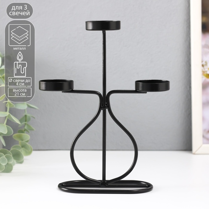 Подсвечник металл на 3 свечи "Бутылочка" d=4 см чёрный 15,5х6х21 см