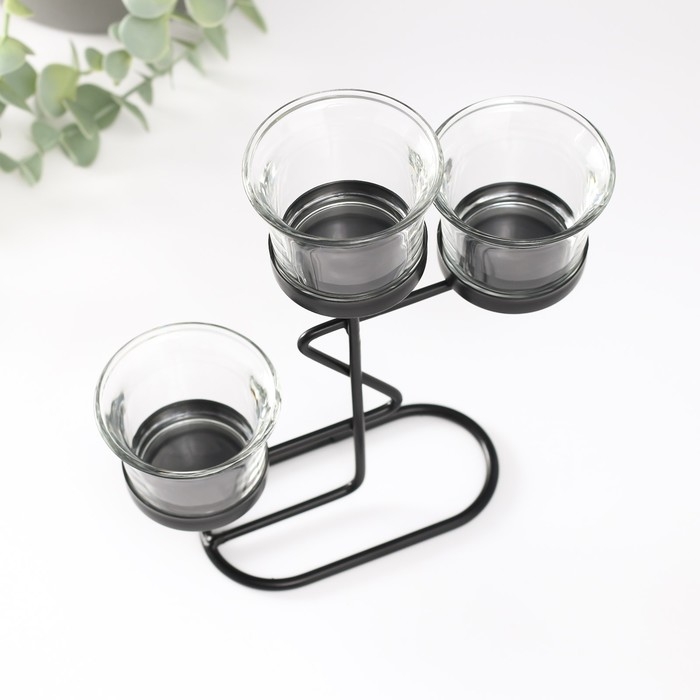 Подсвечник металл, стекло на 3 свечи "Кривая линия" d=2-5 см чёрный 16х6х18,5 см