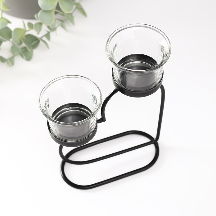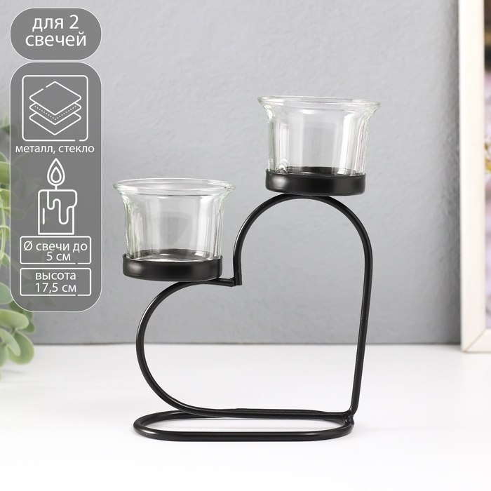 Подсвечник металл, стекло на 2 свечи "Сердце" d=2-5 см чёрный 12х6х17,5 см
