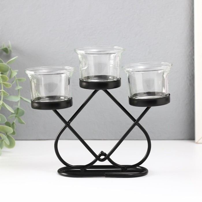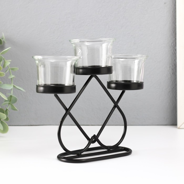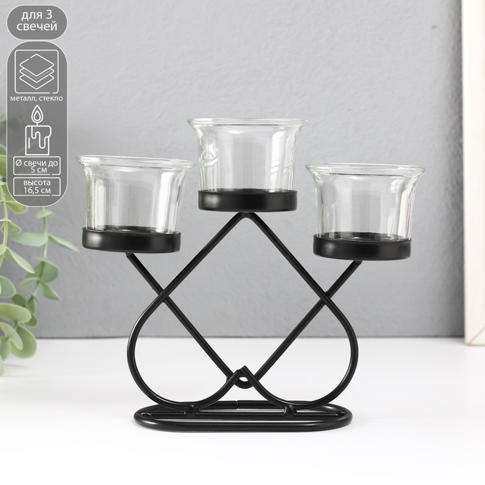 Подсвечник металл, стекло на 3 свечи "Пика" d=5 см чёрный 19х6х16,5 см