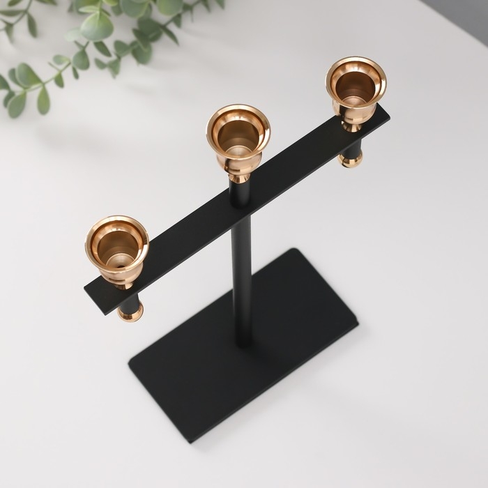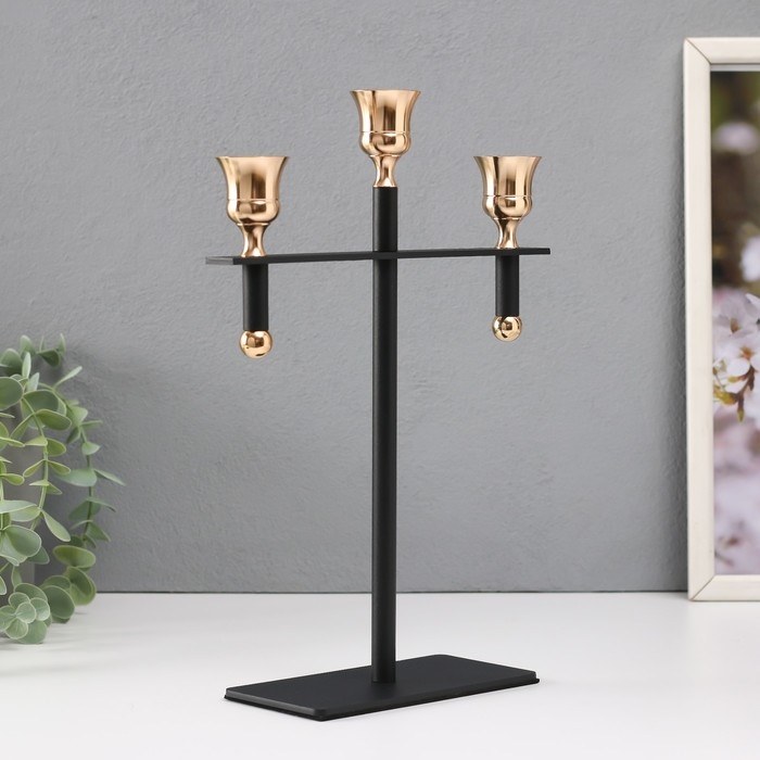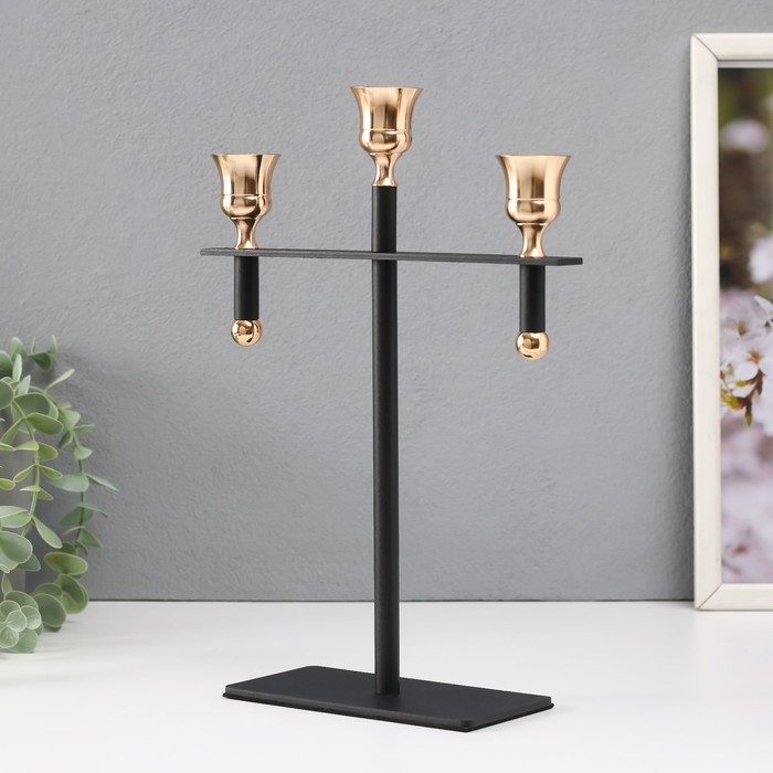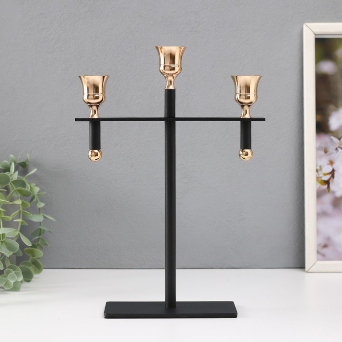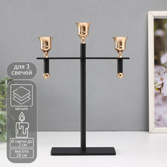 Подсвечник металл на 3 свечи "Кельт" d=2 см чёрный с золотом 20х7х28 см