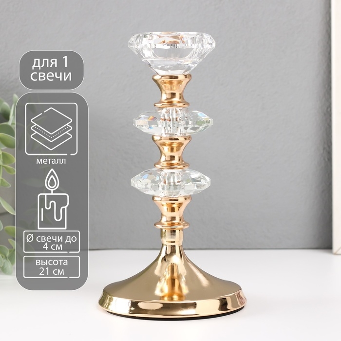 Подсвечник металл на 1 свечу d=4 см "Вазир" золото 11х11х21 см