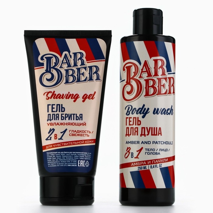Подарочный набор косметики, гель для душа 250 мл и гель для бритья 110 мл, аромат амбры и пачули, HARD LINE