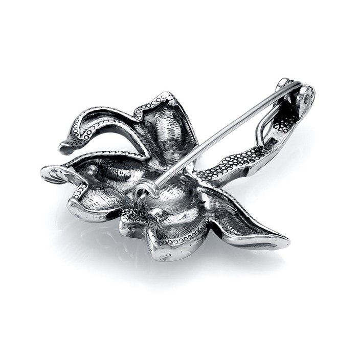 Брошь «Цветок» пион, посеребрение с оксидированием