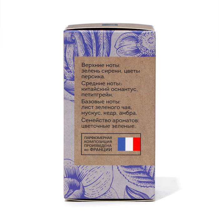- Ноты: чай, кедр, сирень, вистерия, персиковый цвет, петитгрейн, османтус, мускус, пион, амбра