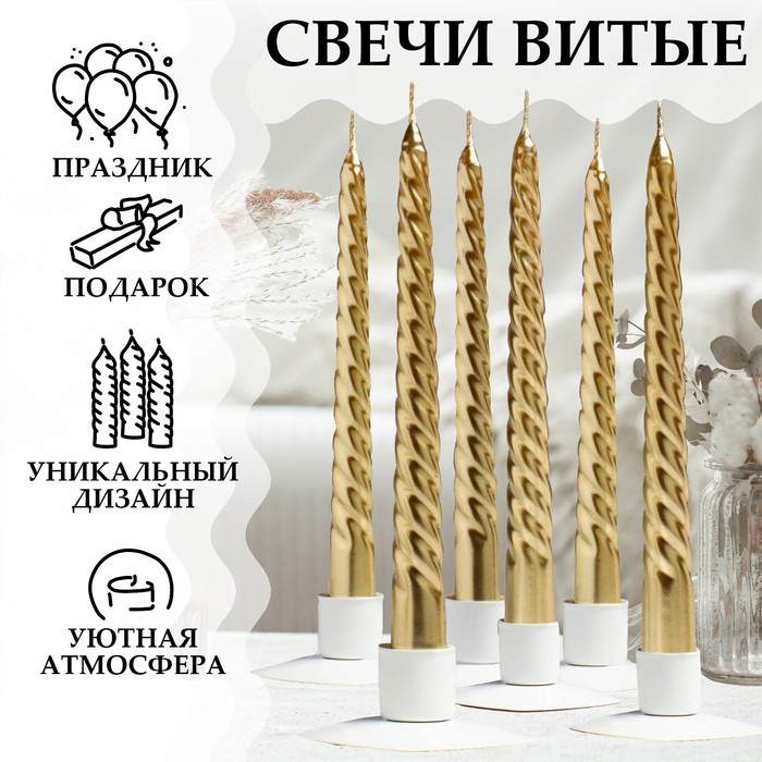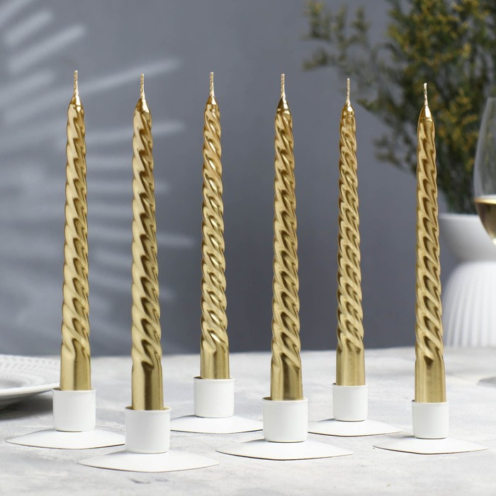 Набор Свечей витых, 1,9х 20 см, 6 штук, золотой металлик