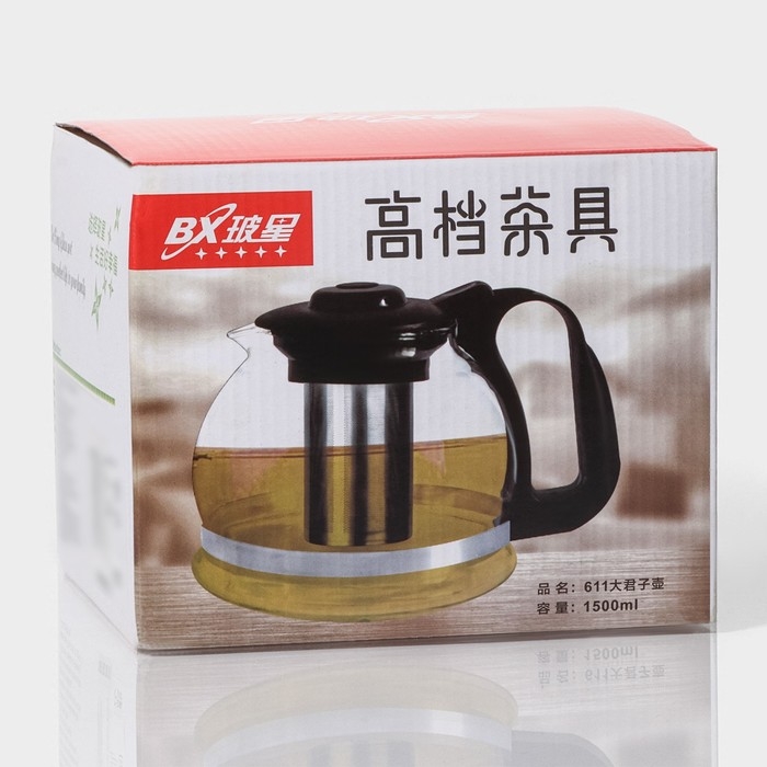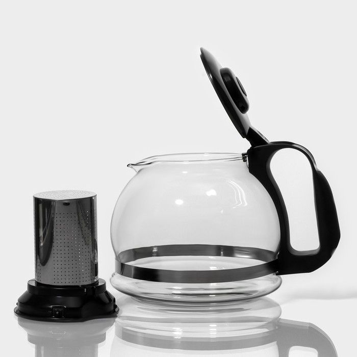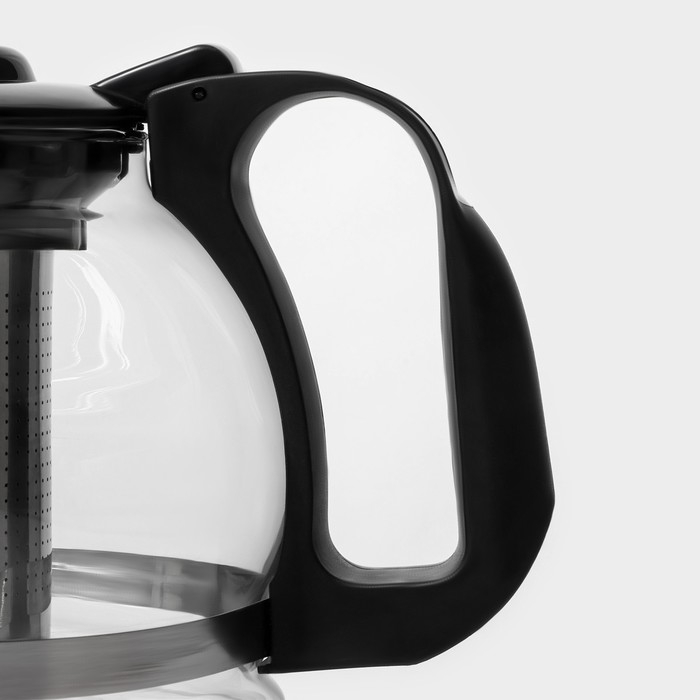 Чайник стеклянный заварочный Доляна «Иллюзия», 1,5 л, с металлическим ситом, цвет чёрный