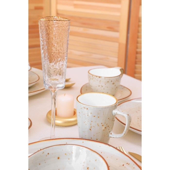 Фарфор этой коллекции отличается неповторимым цветом: нежный бежевый в крапинку. Такое цветовое решение делает каждую тарелку, кружку, блюдце или салатник настоящим произведением искусства.