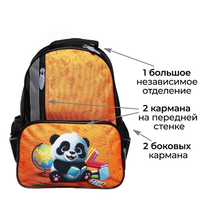 Рюкзак школьный, 37 х 26 х 13 см, эргономичная спинка, Calligrata ОРТ "Панда"