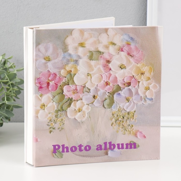 Фотоальбом на 200 фото 10х15 см "Фиалки в горшочке" кожзам 4х21,5х23 см