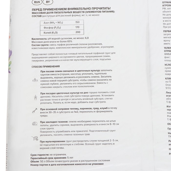 Грунт цветочный является идеальным выбором для садоводов, желающих обеспечить своим растениям наилучшие условия для роста и развития. Он подходит для использования при выращивании самых разнообразных видов цветов, позволяя им получать все необходимые питательные вещества из грунта. Проращивание семян также будет более успешным благодаря этому продукту, поскольку он обеспечивает оптимальный уровень влажности и питательных веществ для быстрого и здорового прорастания.Пикировка и укоренение растений также станут более простыми и эффективными процедурами благодаря этому питательному торфяному грунту. Он обеспечивает хорошую аэрацию и влагоемкость, что помогает корням растений развиваться более эффективно.Кроме того, этот грунт может использоваться в качестве мульчирующего слоя или подсыпки на поверхности почвы. Это помогает сохранить влагу в почве, предотвращает рост сорняков и улучшает структуру почвы, делая ее более рыхлой и воздухопроницаемой. В результате, использование грунта способствует здоровому росту и развитию растений, а также улучшению общего состояния почвы в саду.