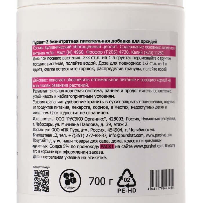 Питательная добавка для раcтений «Для орхидей» Пуршат, 700г