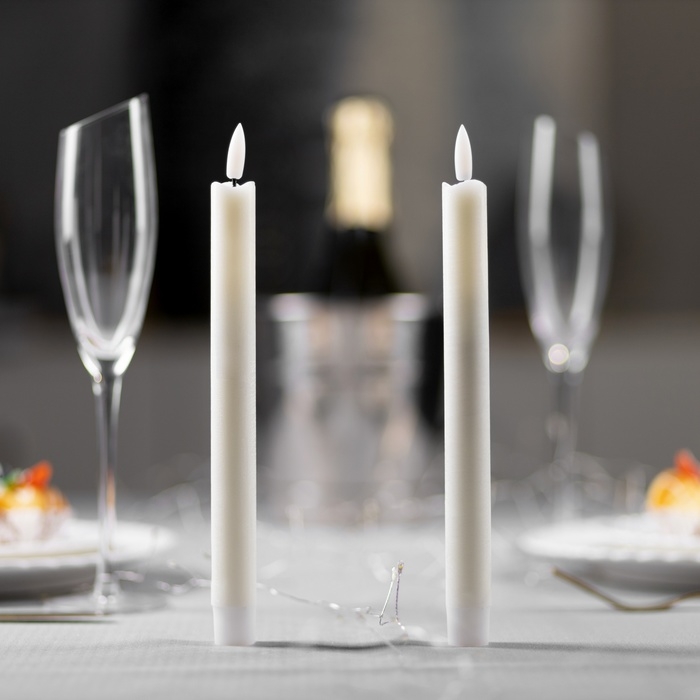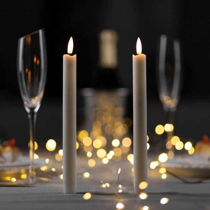 Набор светодиодных свечей, белые, 2 × 25 × 2 см, пластик, воск, батарейки АААх2 (не в комплекте), свечение тёплое белое, 2 шт.