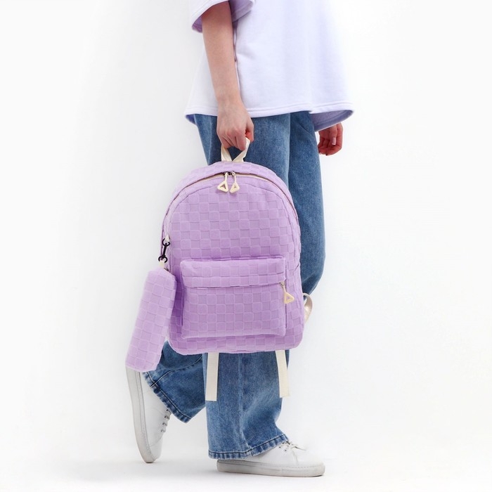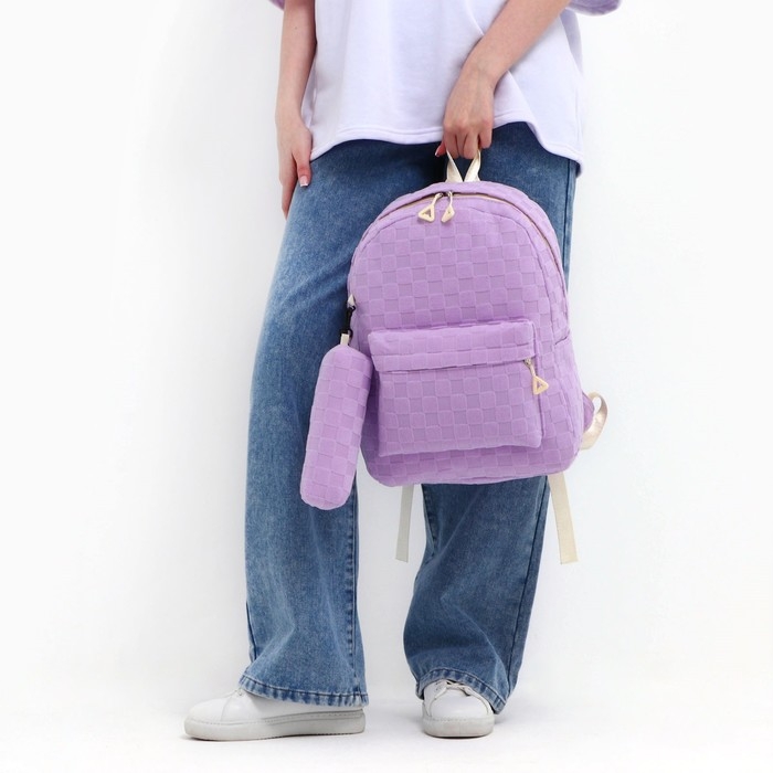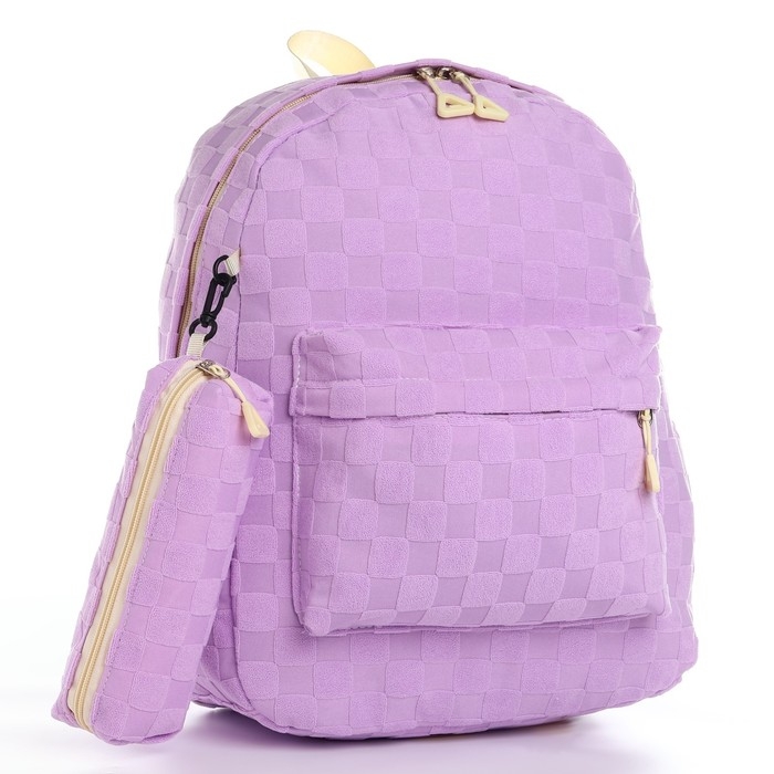 Рюкзак школьный, набор 2 в 1,+ пенал в клетку, 40х28х13 см, цвет сиреневый