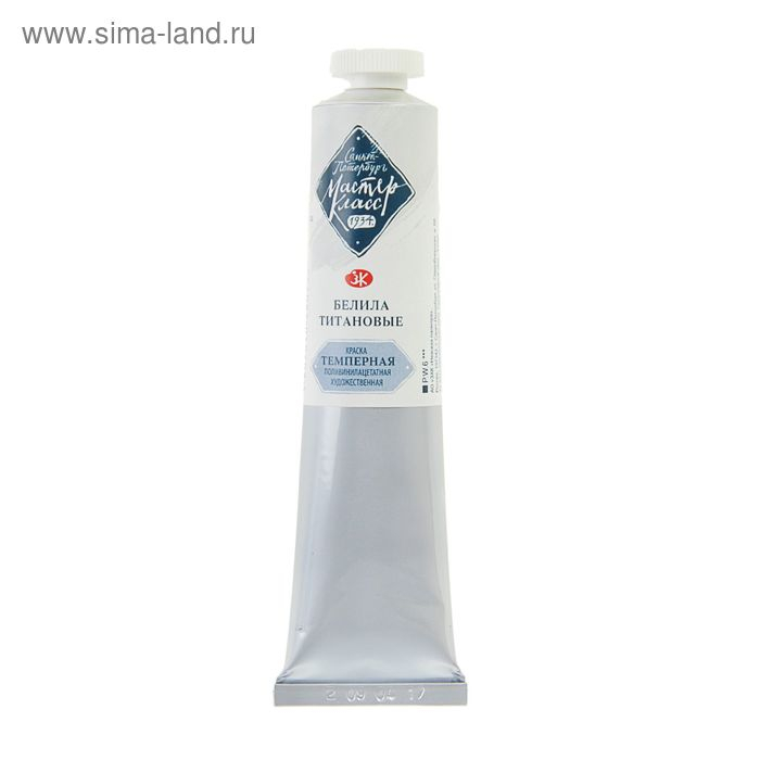 Краска художественная темперная в тубе 46 мл, ЗХК "Мастер-класс", белила титановые, 1604101