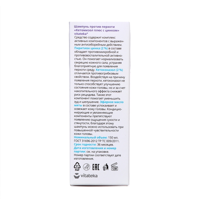 Шампунь от перхоти Кетомизол + цинк "Витатека", 150 мл