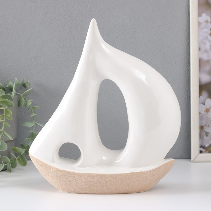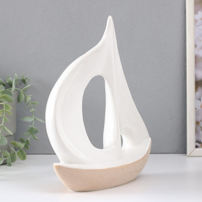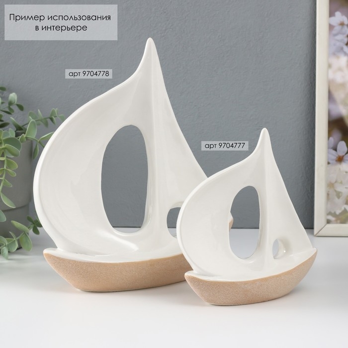 Сувенир керамика "Большой парусник" песочно-белый 22,5х8,5х25,3 см