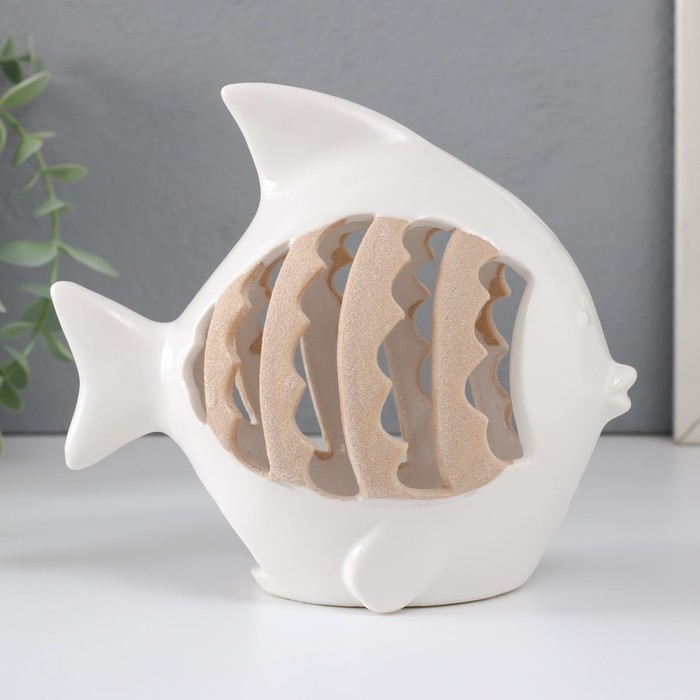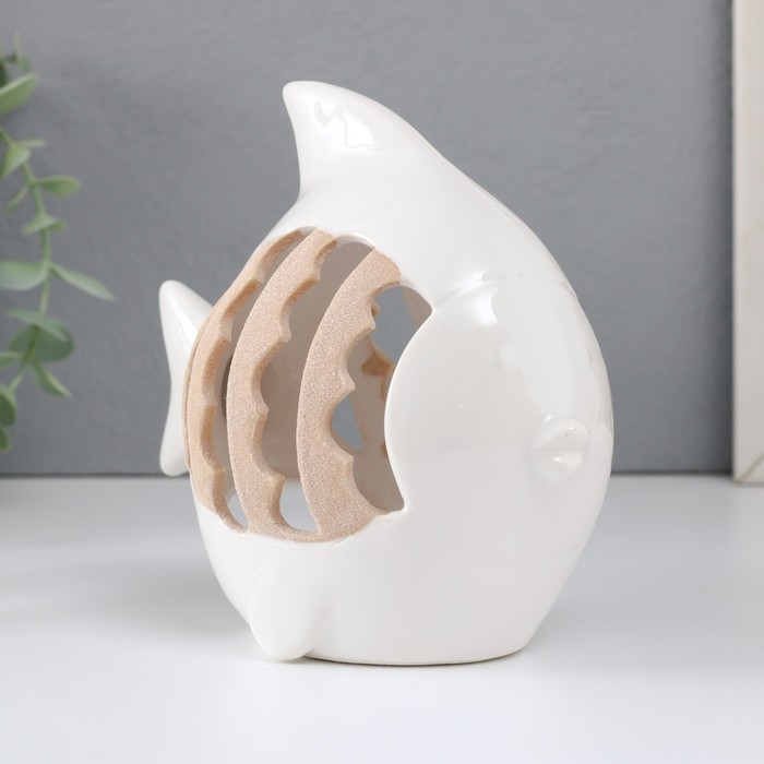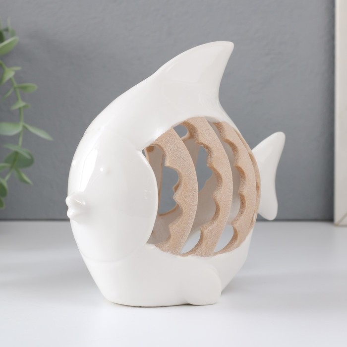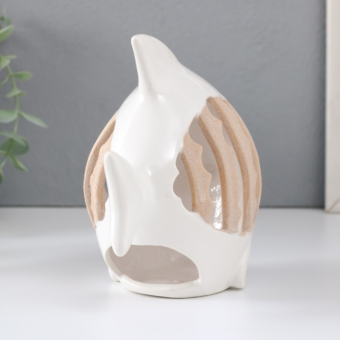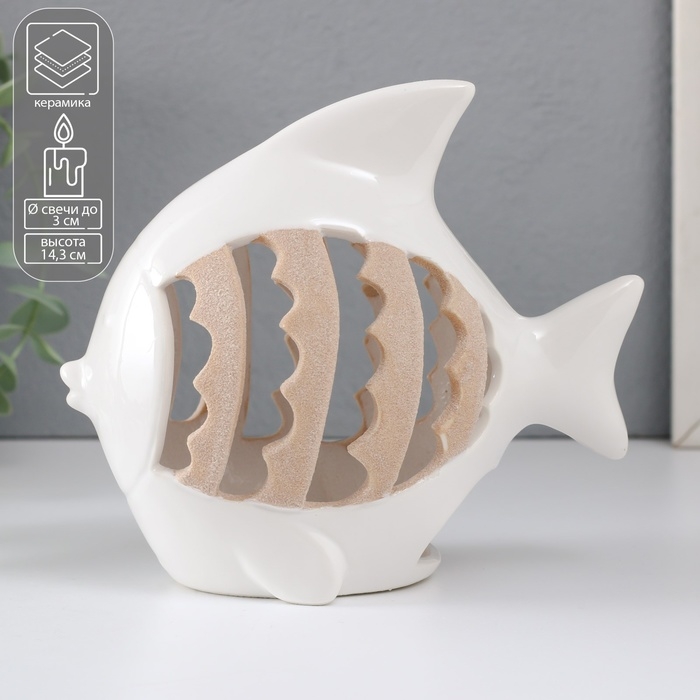 Подсвечник керамика на 1 свечу "Рыбка с узорами" белый 15,7х8,8х14,3 см
