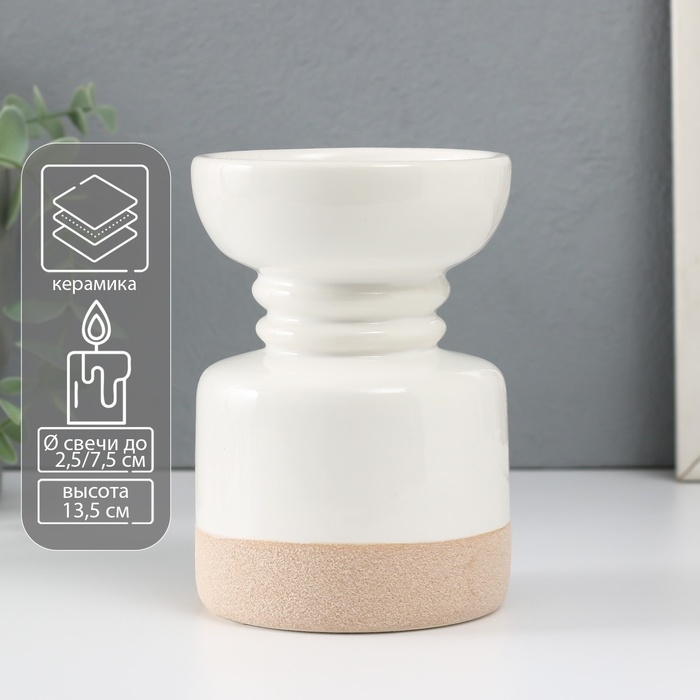 Подсвечник керамика на 1 свечу "Атлант" песочно-белый 9,3х9,3х13,5 см