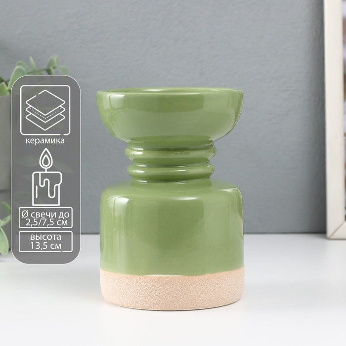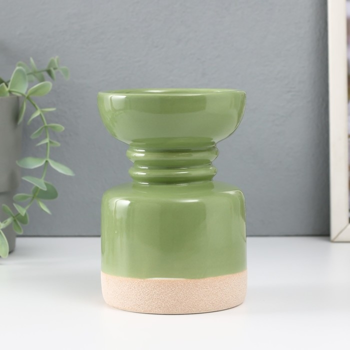 Подсвечник керамика на 1 свечу "Атлант" песочно-зелёный 9,3х9,3х13,5 см