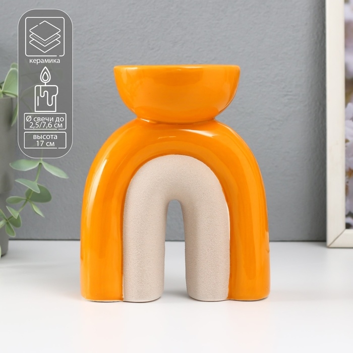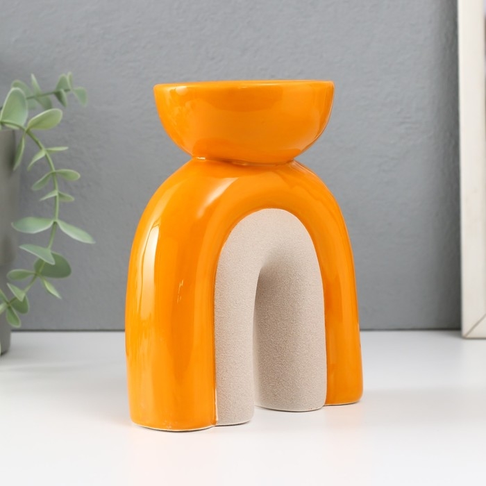 Подсвечник керамика на 1 свечу "Медуза" песочно-оранжевый 11,7х8х15 см