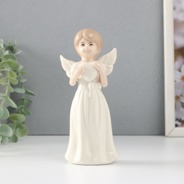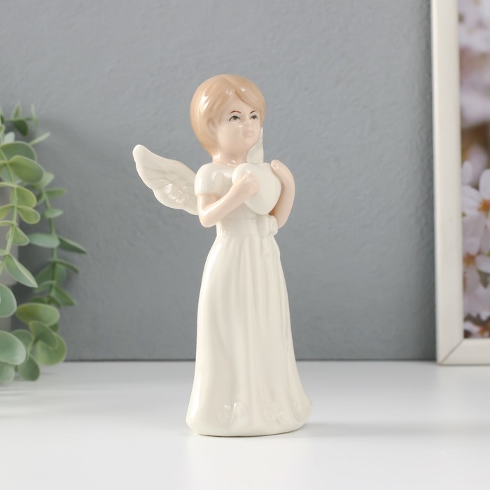 Сувенир керамика "Девочка-ангел в белом платье с сердцем в руках" 6,6х5х15,7 см