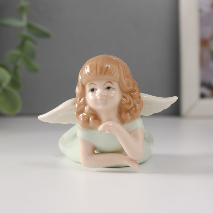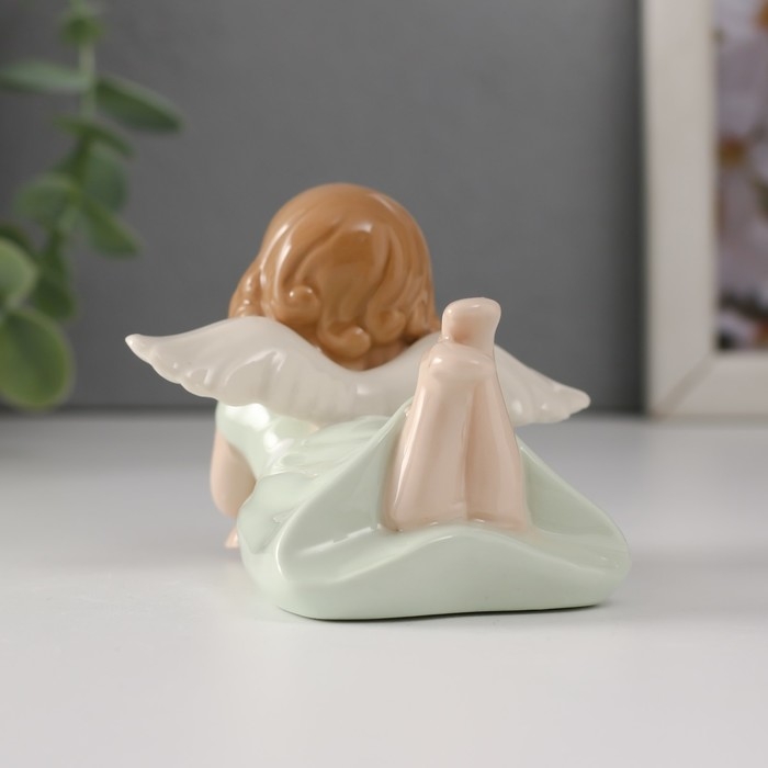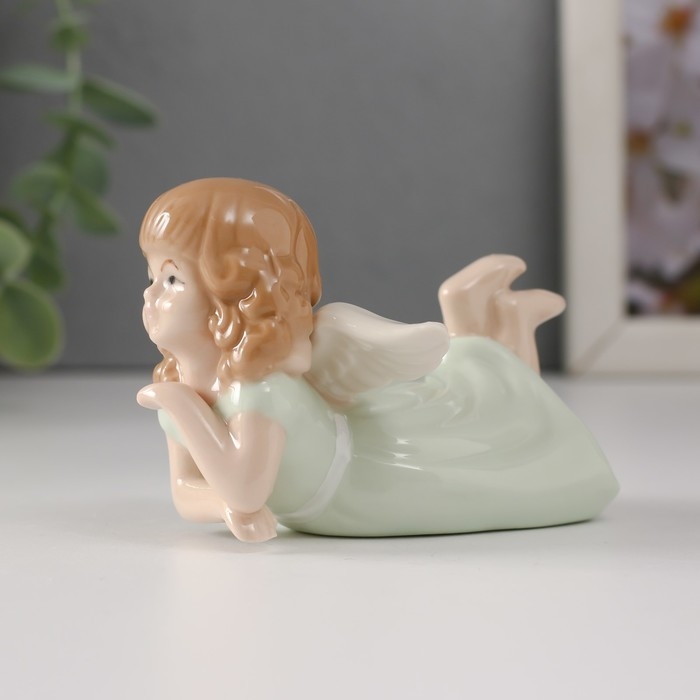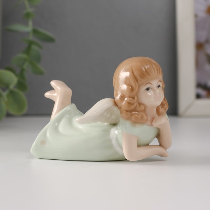 Сувенир керамика "Девочка-ангел в зелёном платье лежит" 9х7х5,5 см