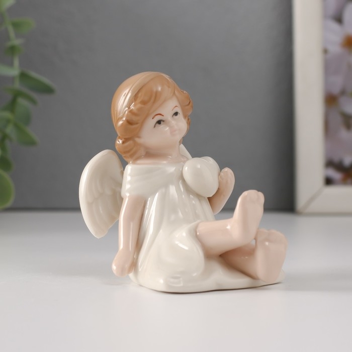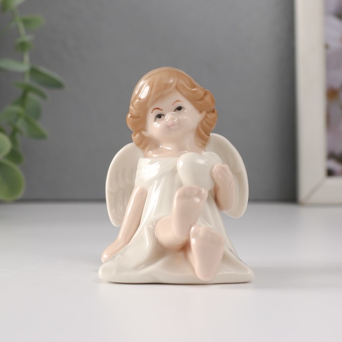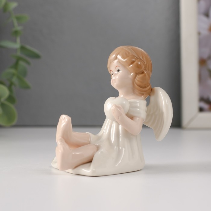 Сувенир керамика "Девочка-ангел в белом платье с сердцем сидит" 6,5х5х7 см