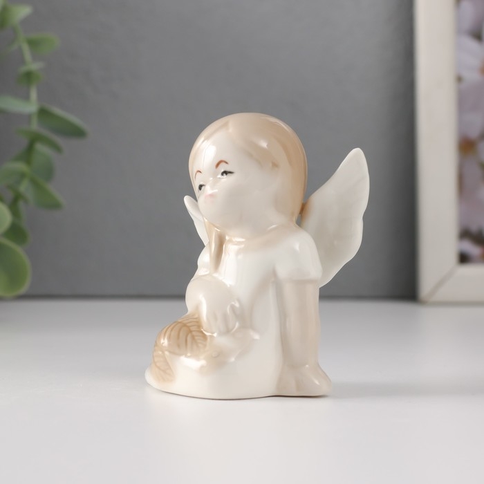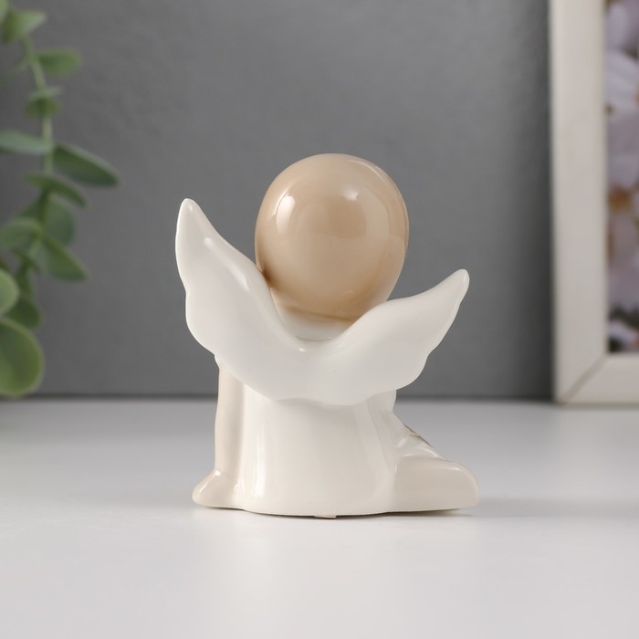Сувенир керамика "Девочка-ангел в платье с листьями сидит" 5,8х3,5х7 см