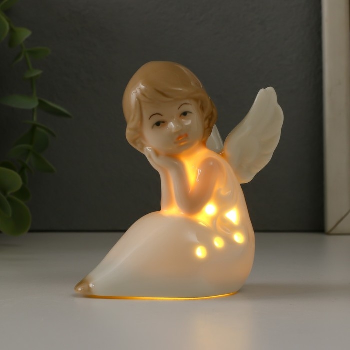 Сувенир керамика свет "Девочка-ангел сидит" 6х8х9 см