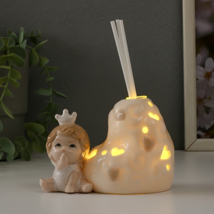 Сувенир керамика свет аромадиффузор "Малыш-ангелок в короне" 6,5х11х8 см