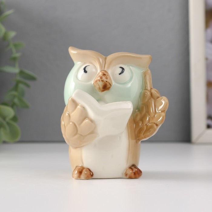 Сувенир керамика "Маленький филин с книгой" 7х7х9 см