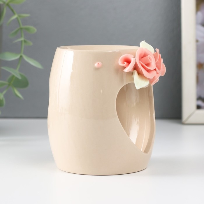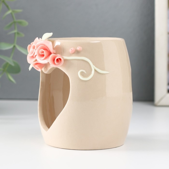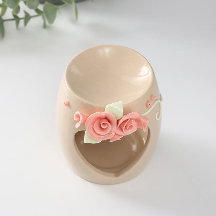 Аромалампа керамика "Сердце с розами" бежевая 8х8х9 см