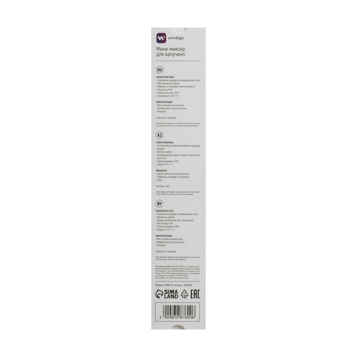 Капучинатор погружной Windigo WMR-02, от батареек (не в комплекте), металл