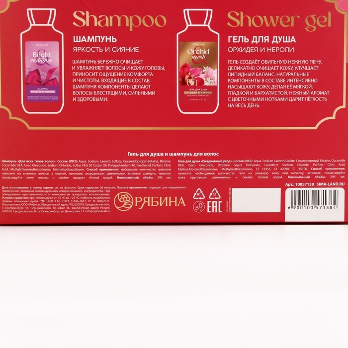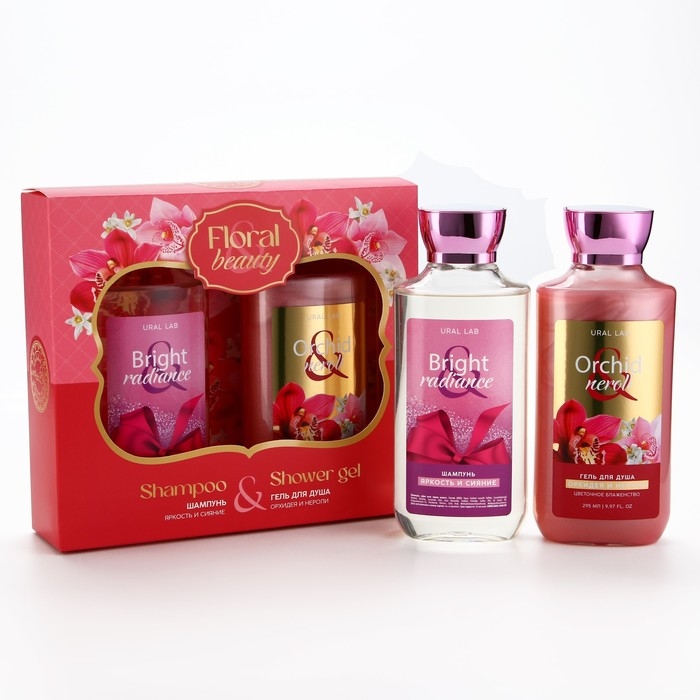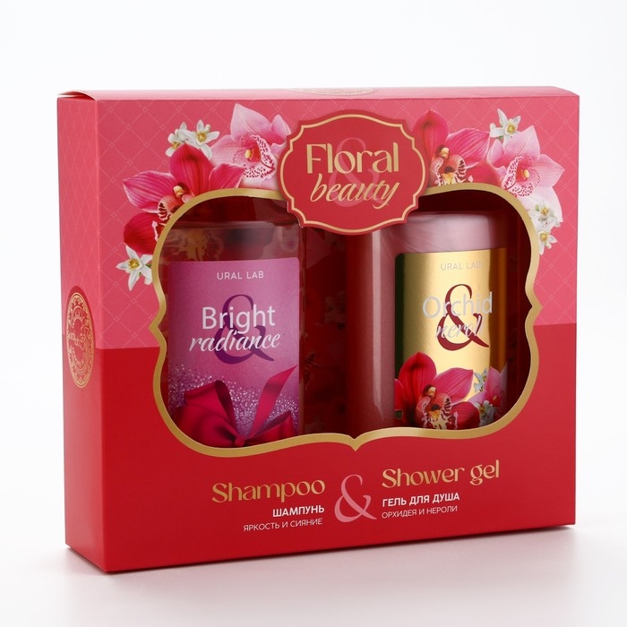 Подарочный набор косметики, гель для душа 295 мл и шампунь для волос 295 мл, FLORAL & BEAUTY by URAL LAB