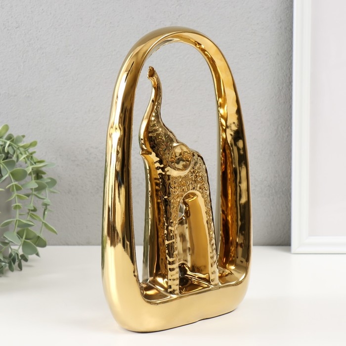 Сувенир керамика "Слон и слонёнок" золото 5,5х17,5х29 см