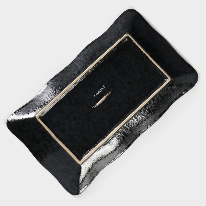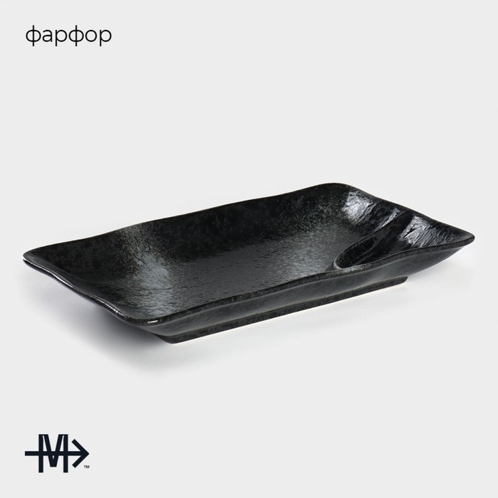 Блюдо сервировочное с соусником фарфоровое Magistro «Ночной дождь», 31×18,5×4 см, цвет чёрный