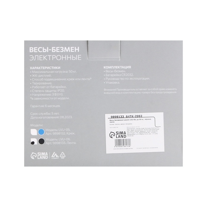 Весы багажные Luazon LV-404, до 40 кг, черные