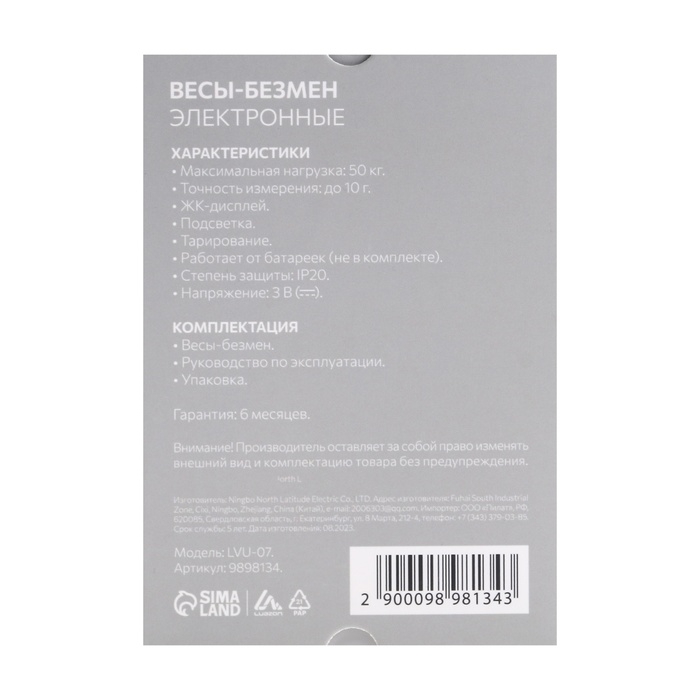 Простое управление и экономный расход заряда позволяет с удобством пользоваться весами. Воспользуйтесь кнопкой на корпусе устройства, чтобы включить и выключить устройство. Также весы оборудованы функцией автоматического выключения и световым индикатором работы.Дополнительные возможности – тарирование и выбор единиц измерения – поможет настроить работу безмена под ваши нужды.