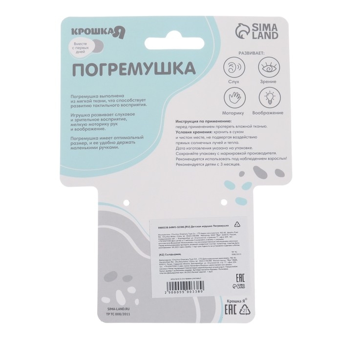 Серия игрушек-зверушек ТМ «Крошка Я» создана специально для малышей от 3 месяцев. В этом возрасте новорождённый начинает реагировать на звуки. Мелодичные колокольчики внутри погремушки помогут ребёнку закрепить этот навык.