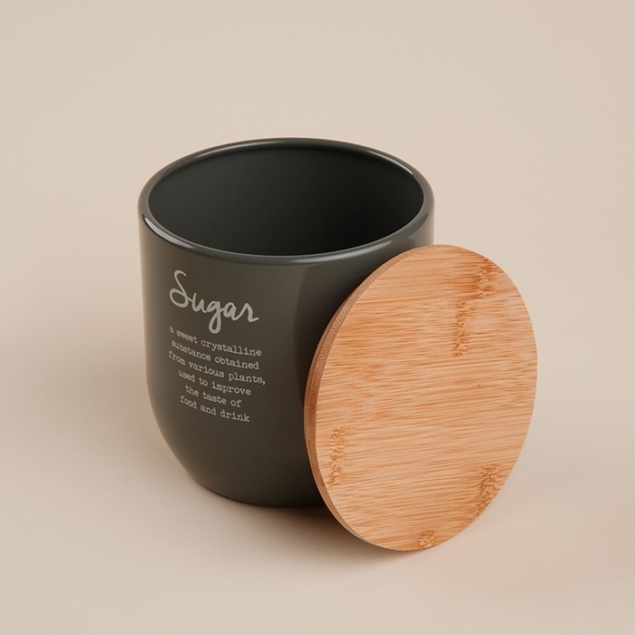 Банка для сахара SL Home, 12×12 см, цвет серый, с бамбуковой крышкой