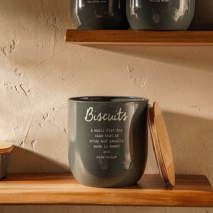 Банка для сыпучих продуктов SL Home, 15×15,5 см, цвет серый, с бамбуковой крышкой